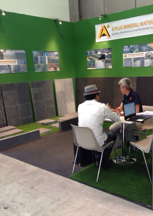 As one of the leading suppliers of natural stone in Vietnam, A plus presented at Marmomac fair with samples of Blue stone, Basalt, White Marble and Granite in the green background. The participant of A Plus at Marmomac fair was the proof of the constant development itself in the flow of the worldwide stone industry.