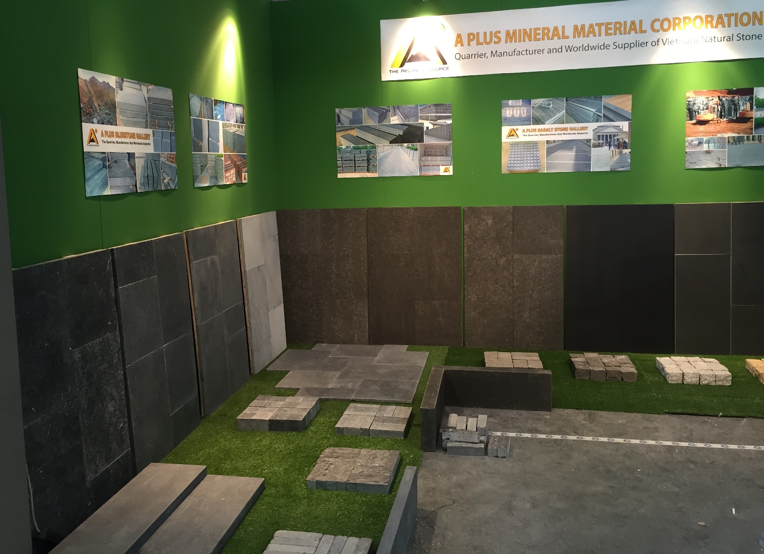 As one of the leading suppliers of natural stone in Vietnam, A plus presented at Marmomac fair with samples of Blue stone, Basalt, White Marble and Granite in the green background. The participant of A Plus at Marmomac fair was the proof of the constant development itself in the flow of the worldwide stone industry.