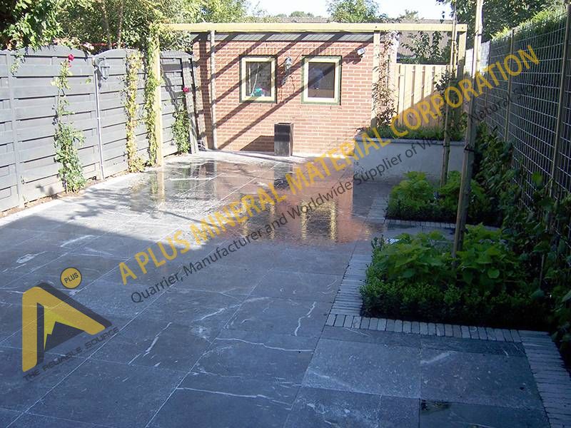 Blue stone vibrated are made light honed first then vibrated in Rosler machine to make antique looks. Our products have stable and even deep blue color without black vein or strip. The products are packed firmly in wooden crates.