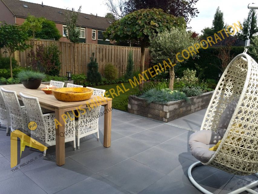 It is usually applied for slabs, tiles, kerbs or stairs. The stable and even deep blue color without black veins or strips is important.