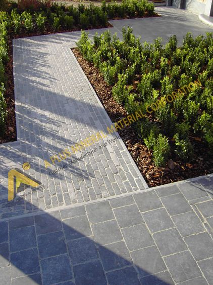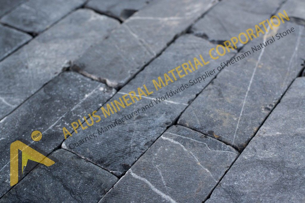 Our high class blue stone tumbled products are cut and grinded for flat surface then tumbled 3-4 hours in tumble machine. The finish products are round edge and flat-sand blasted surface, completely without sawn mark.