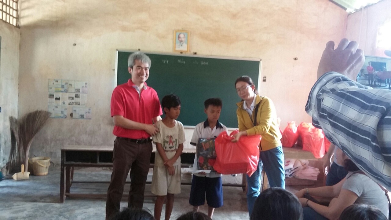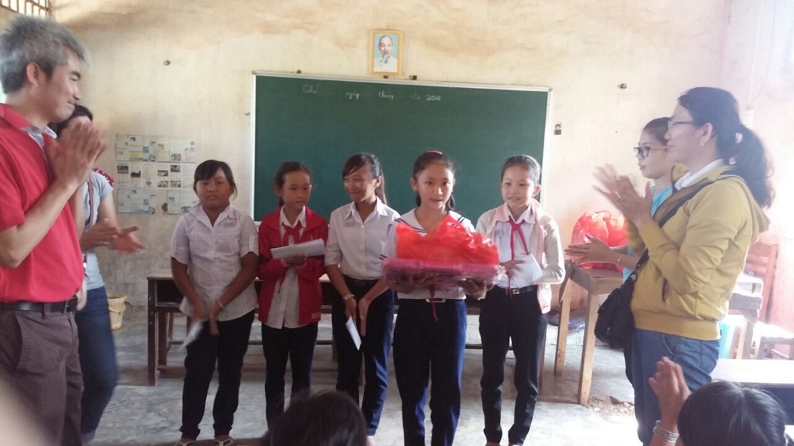 We visited a small primary school. There are only few classes with poor facilities. The gifts were given to 20 students who were misfortunate but still performed well at school.
