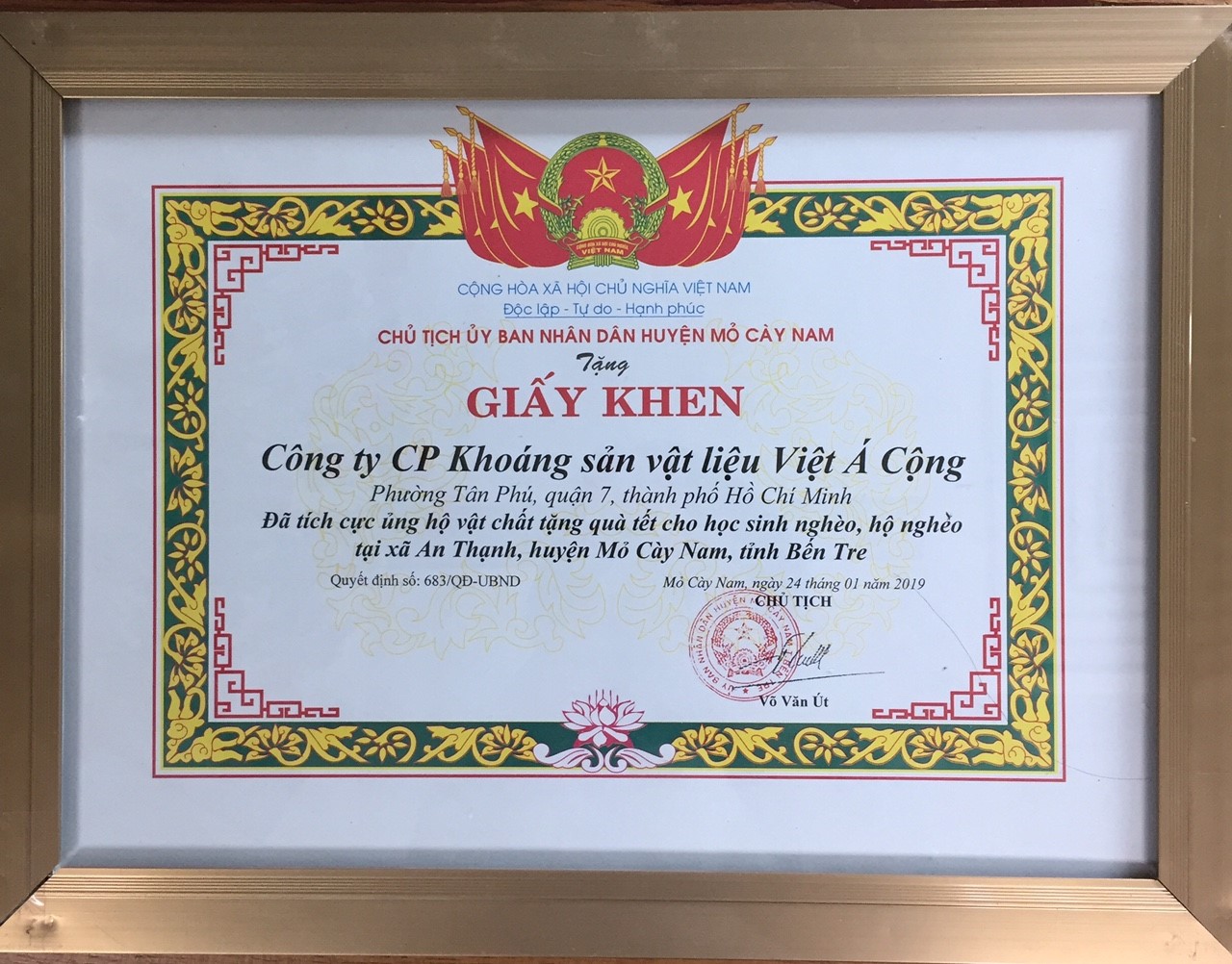 People’s Committee of Mo Cay Nam District presented Certificate of appreciation to A Plus Corporation – Photo by A Plus Corp